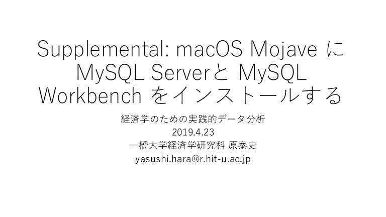 経済学のための実践的データ分析 Macos Mojave にmysql Serverと Mysql Workbench をインストールする